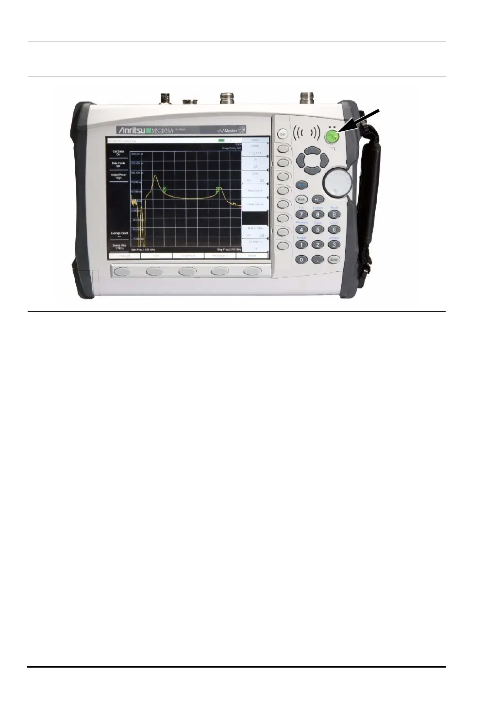 To turn on the VNA Master, press the On/Off front panel button (Figure 2-1).