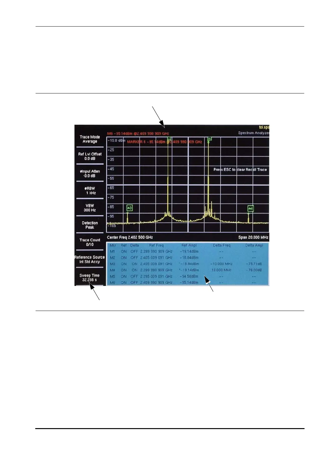 Figure 2-4 illustrates some of the key information areas of the Spectrum Analyzer display of