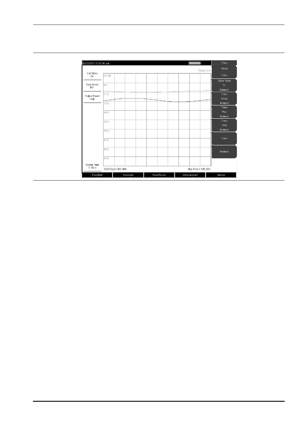 7. Press the Trace Minus Memory soft key to look at the difference in Return Loss between