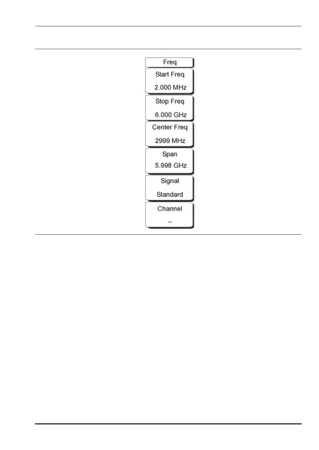 frequency and span can be specified, the start and stop frequencies can be entered, or a signal