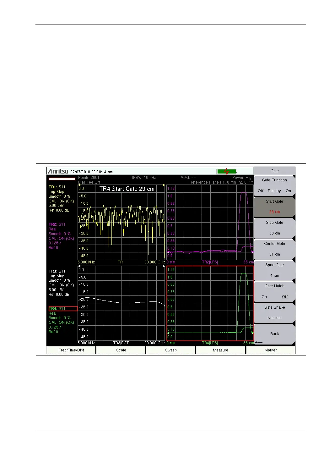 cable and DUT along with a gate that is placed around the DUT from 29 cm to 33 cm. The