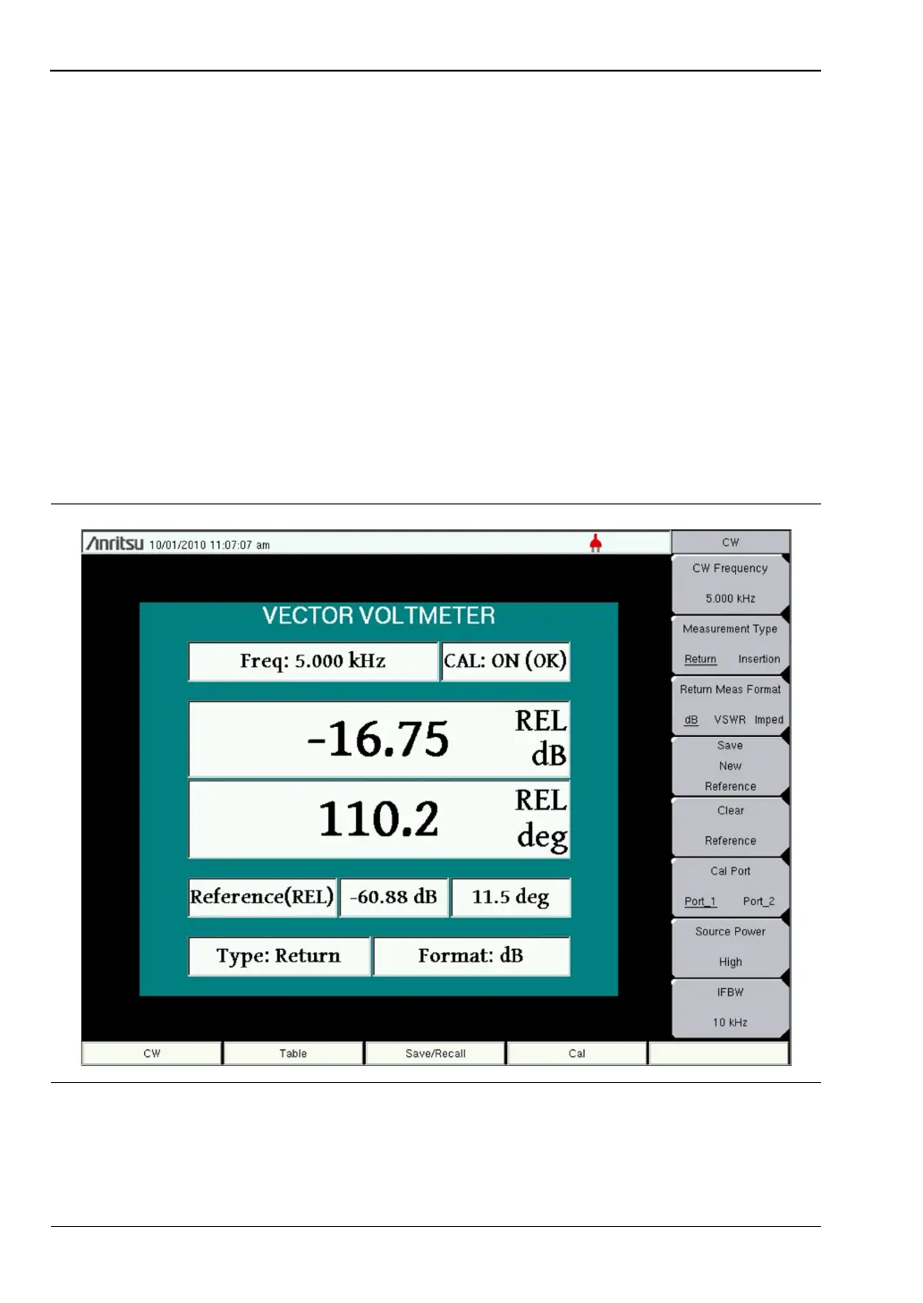 1. From the CW menu, preset the Vector Voltmeter for relative (by an amount)