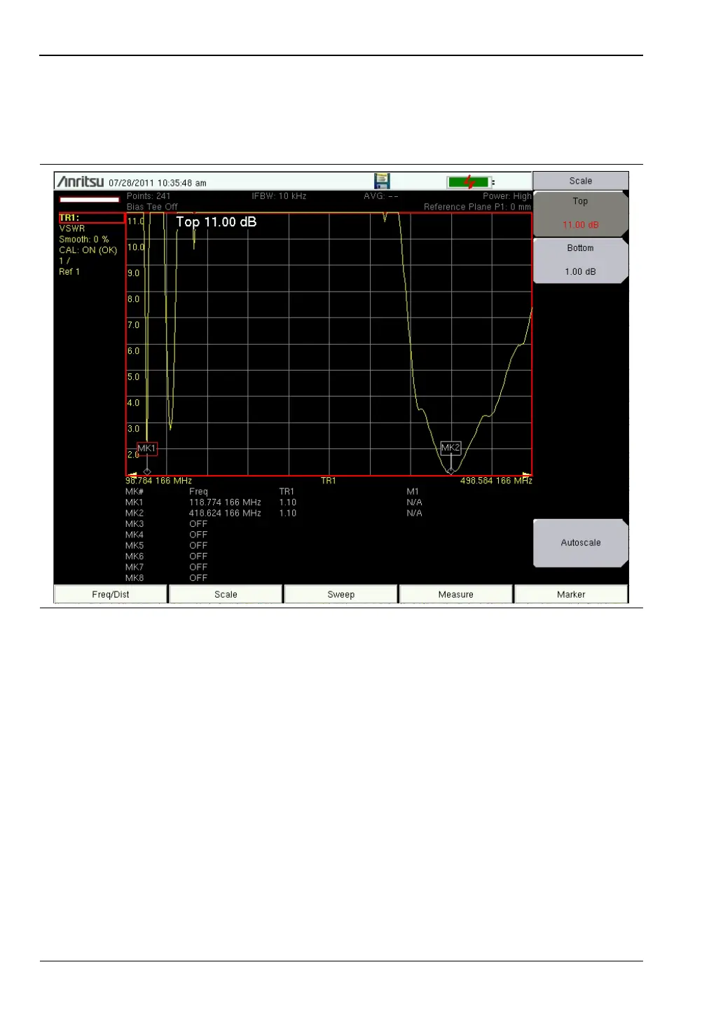 14. Press the Measure function hard key and select VSWR from the Graph Type Selector
