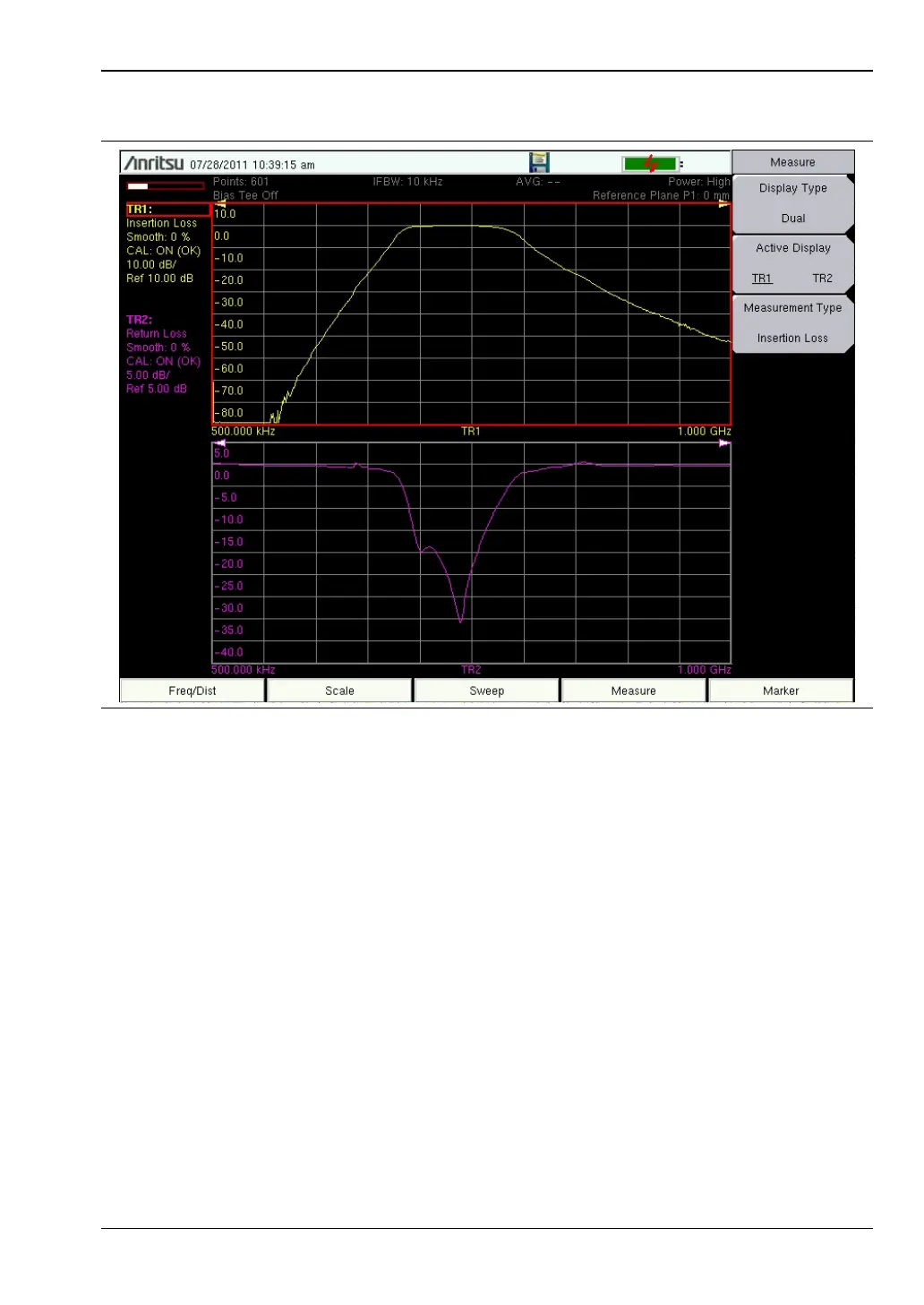 Figure 5-14. Filter Tuning, Log Mag – Display Type Dual – Insertion Loss and Return Loss