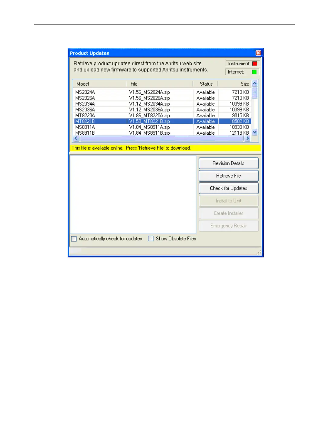 2. Click Retrieve File to download the file from the Web site to your PC.