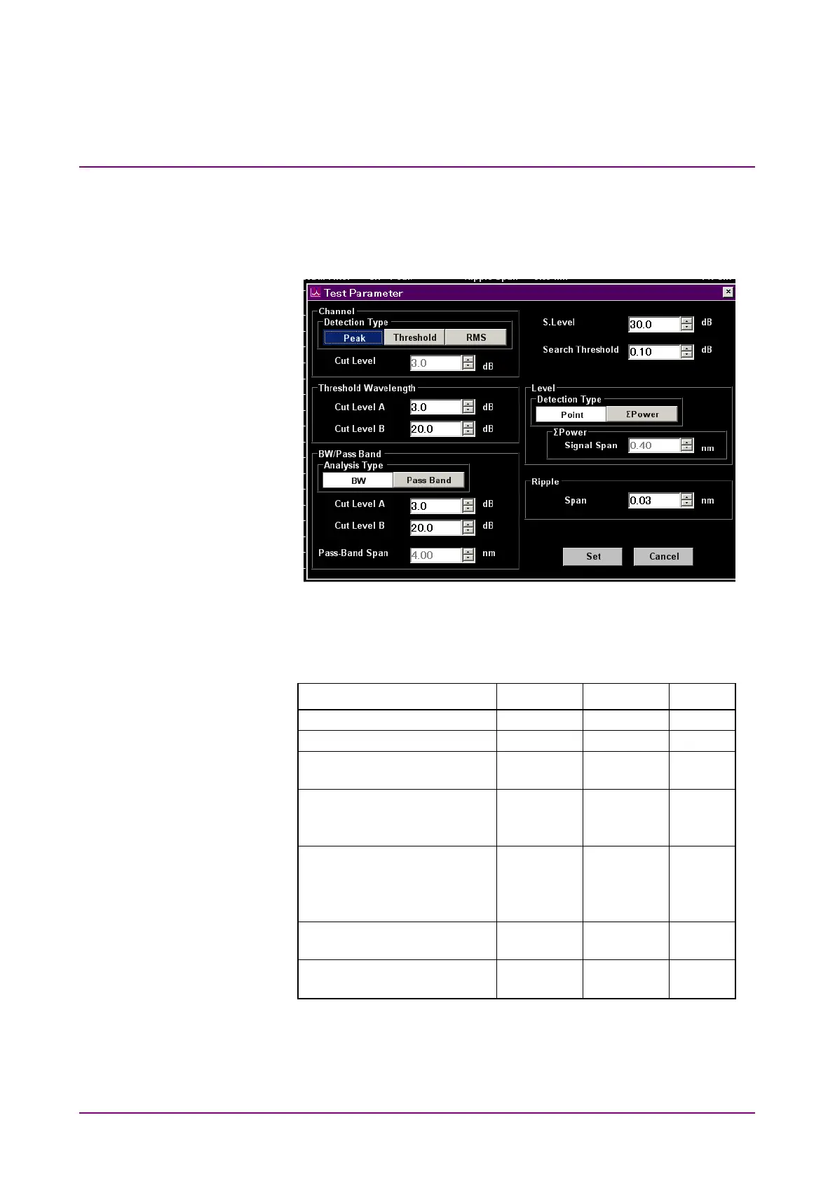Table 5.9.3-1 Setting Range of the Parameters in the Test Parameter
