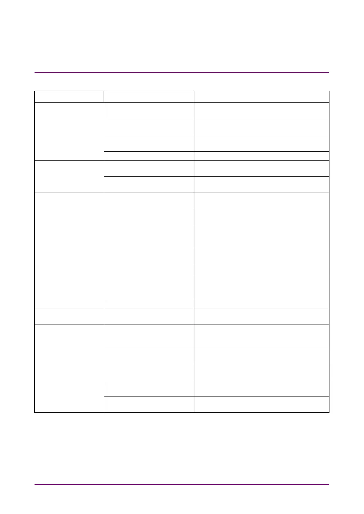 Phenomenon Possible cause Action