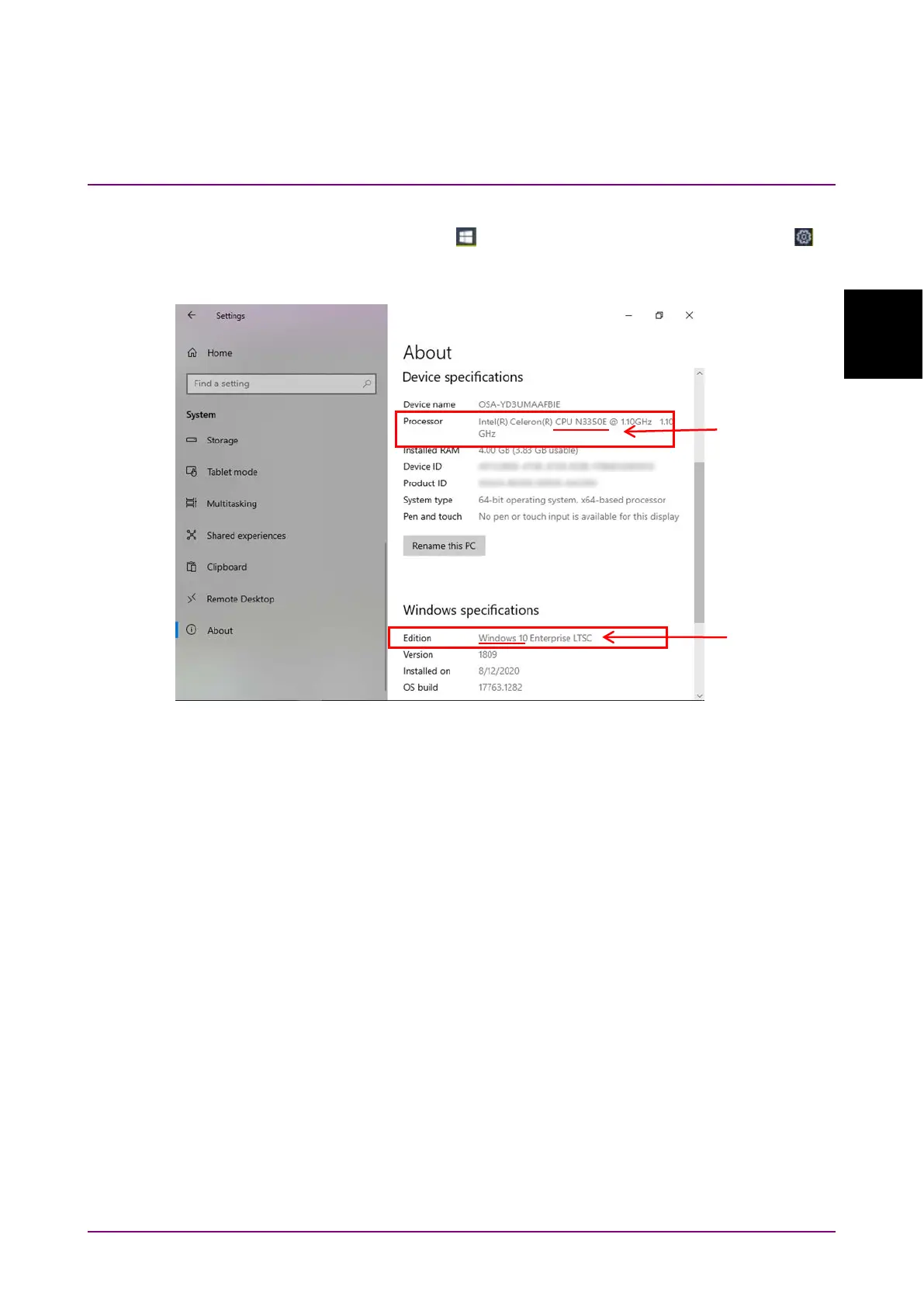 the processor and edition information.