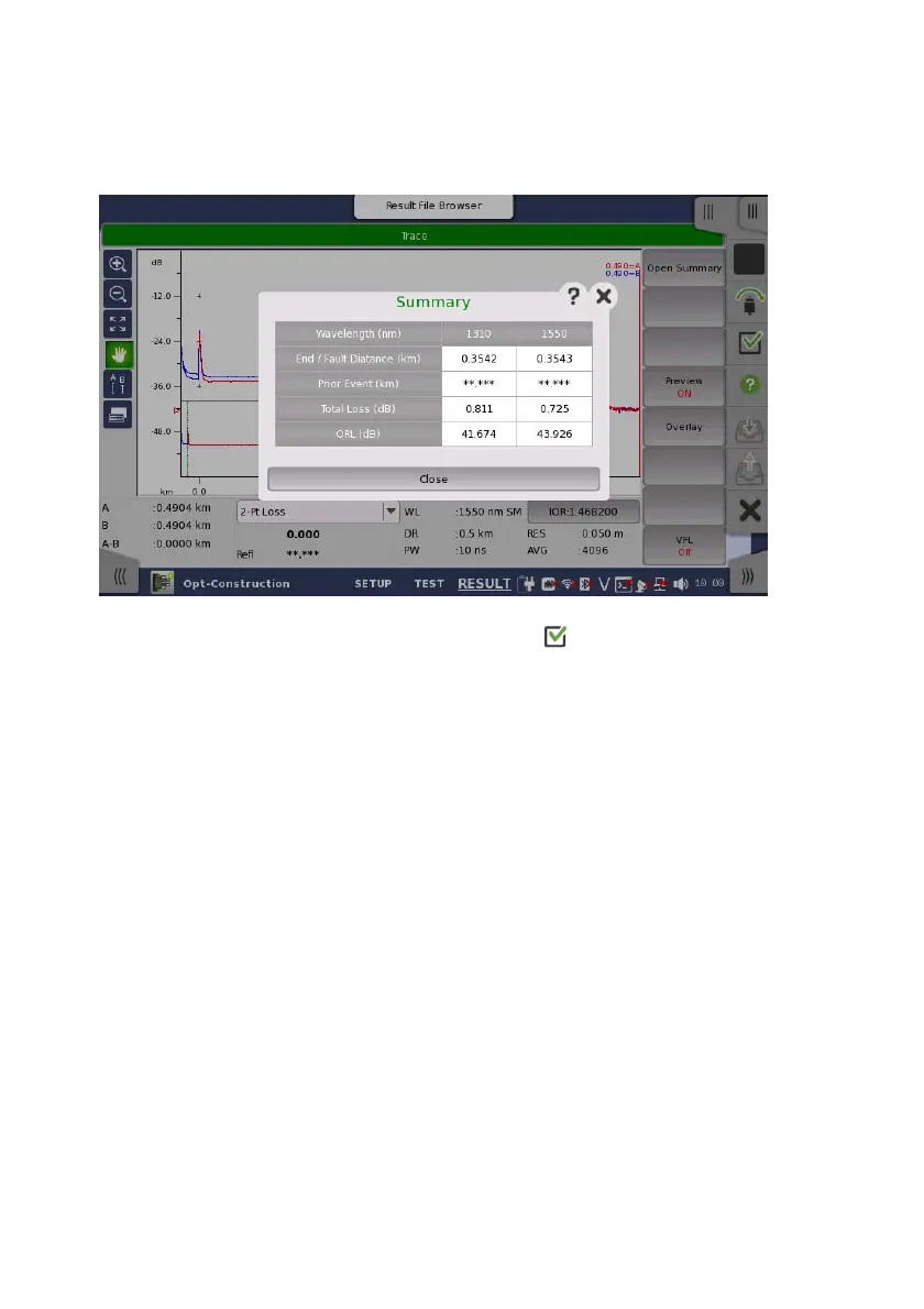 9. If Preview has set to On during the measurement, the Summary