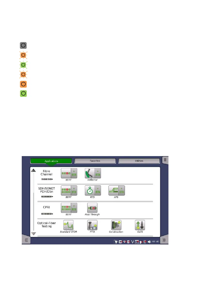 Power button indication shows the following status.
