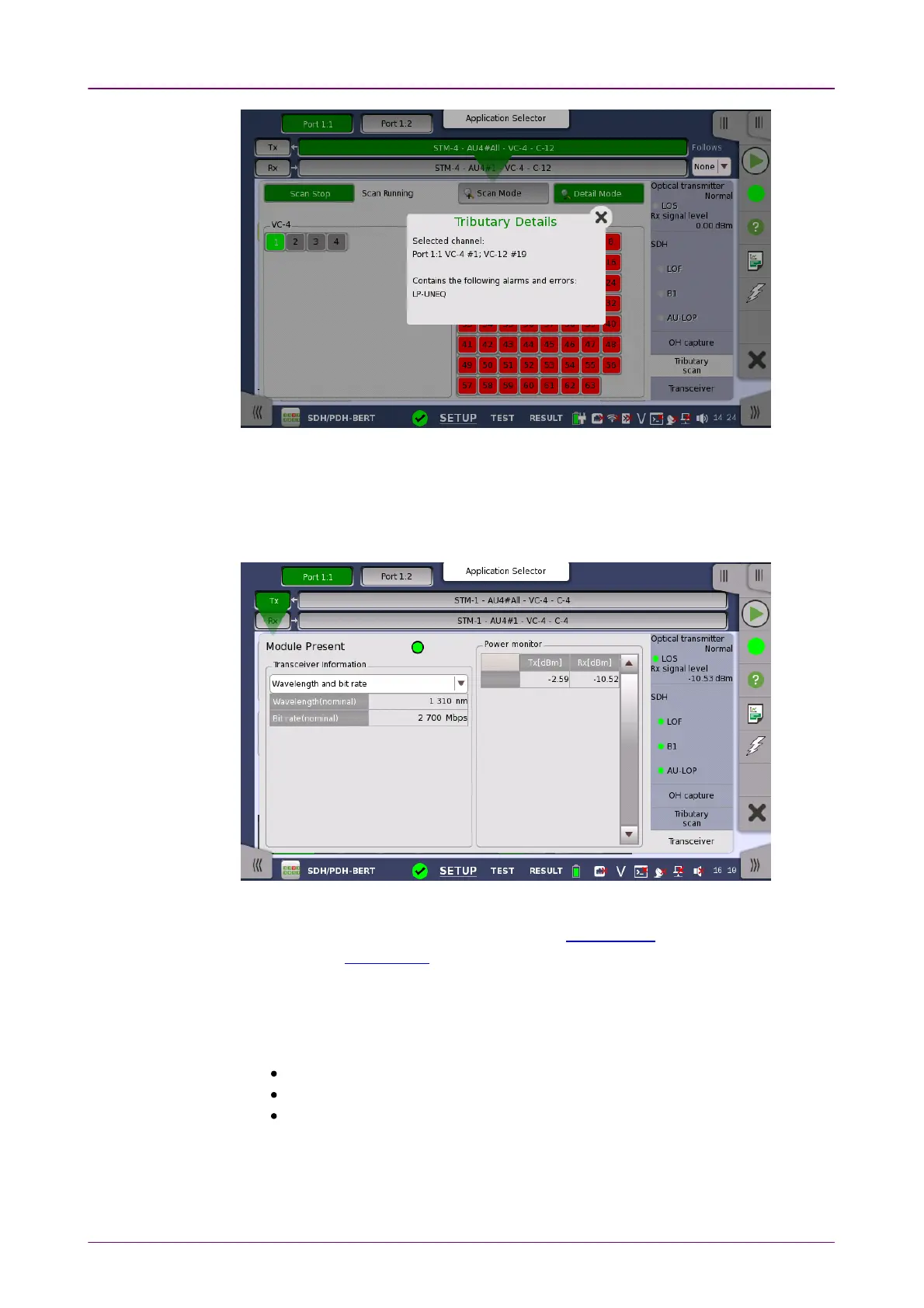 Touching the TransceiverTransceiver button in the status area of the Ports SetupPorts Setup screen