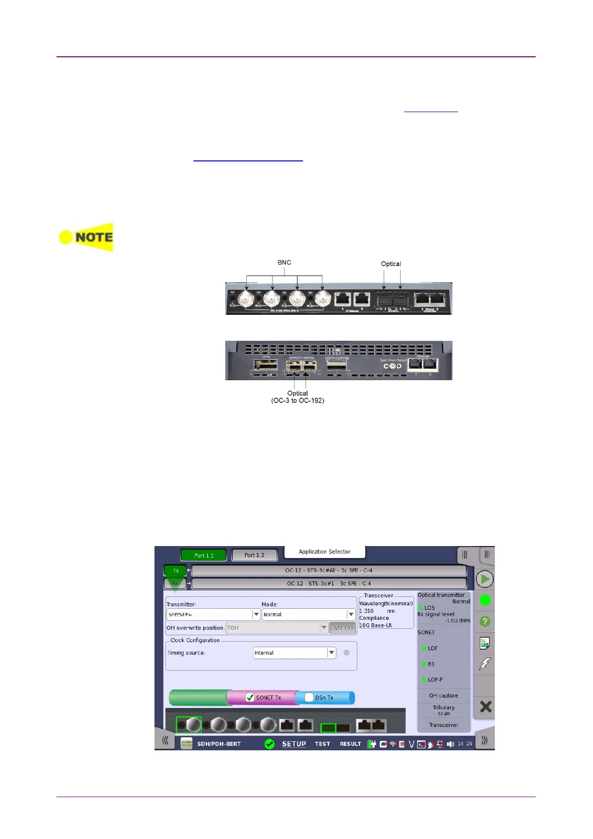 The SONET interface uses the electrical BNC connectors and the optical ports.