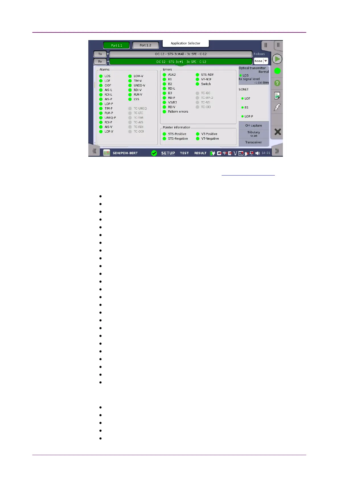 SONET interface. Status is indicated by the use of colored Lamp icons.