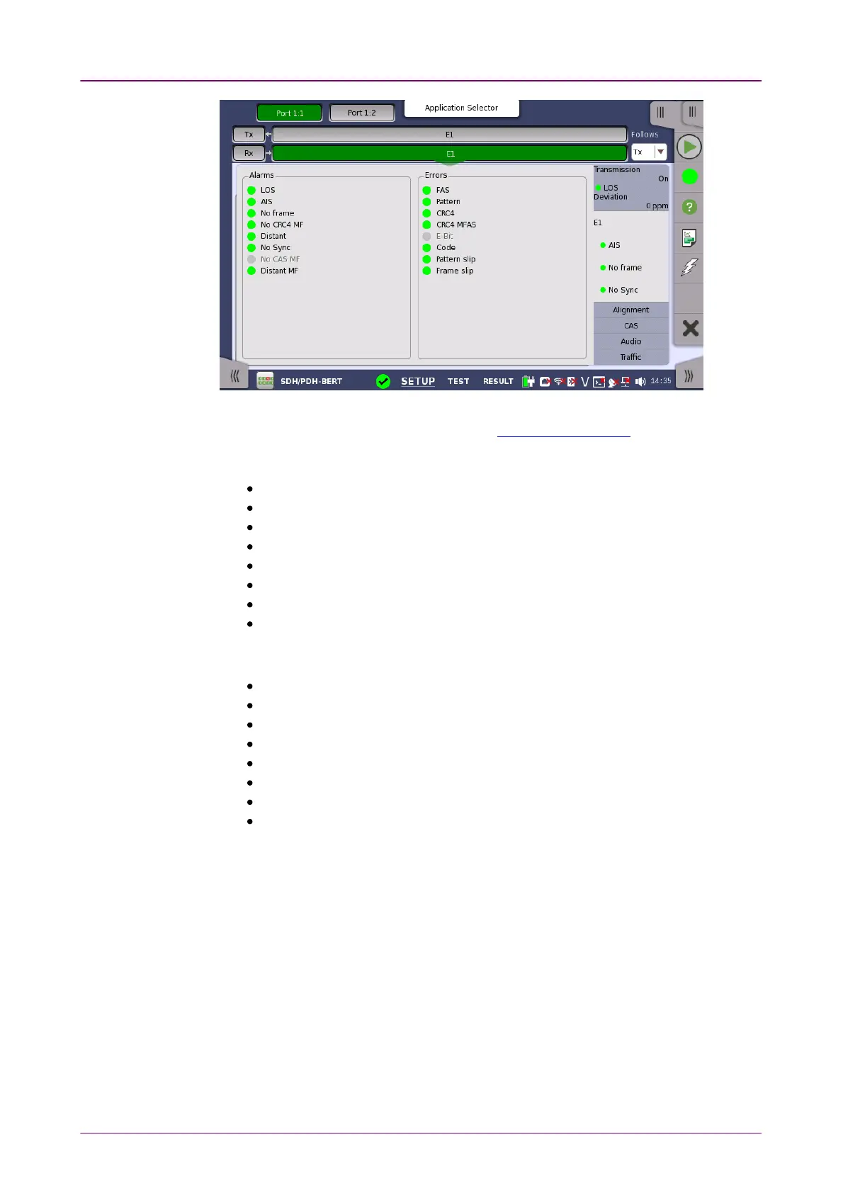 Touching the AlignmentAlignment button in the status area of the Ports SetupPorts Setup screen