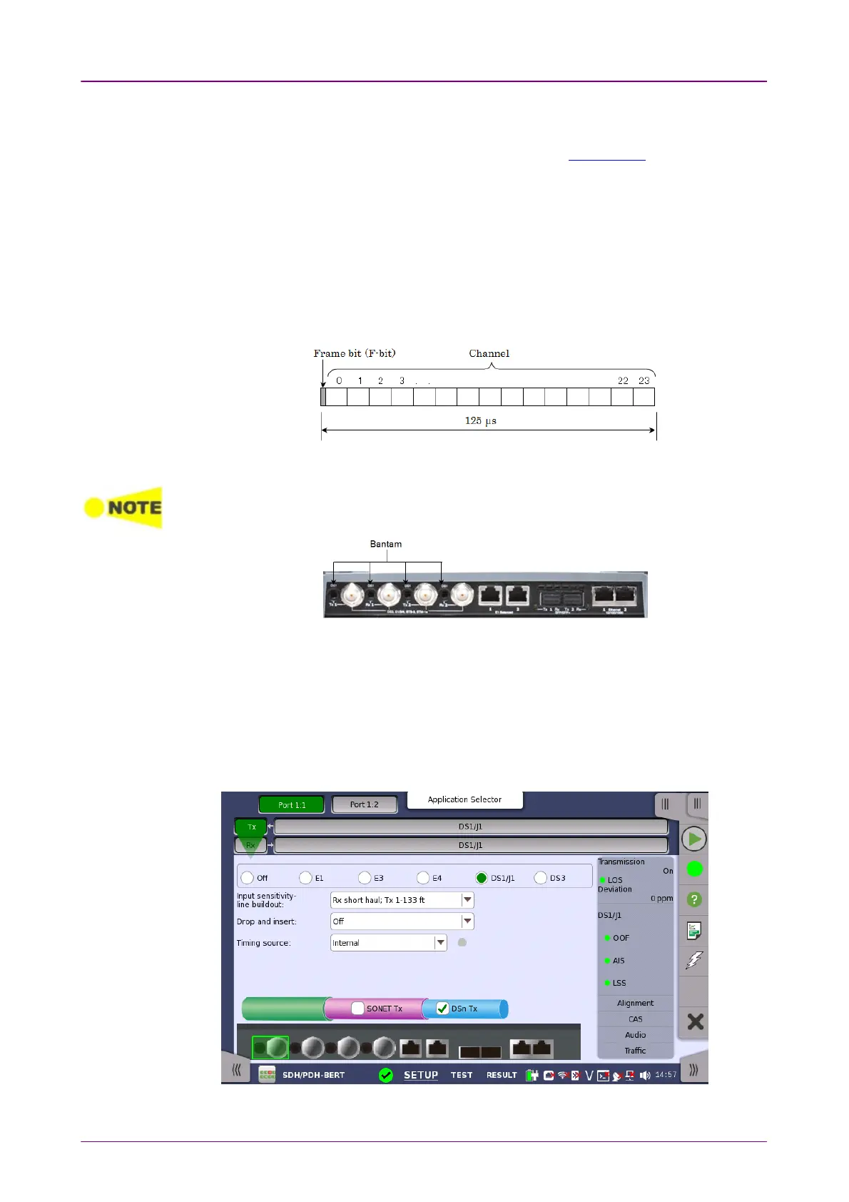 When the transmitter is set up with only a DS1/J1 interface, touching the TxTx