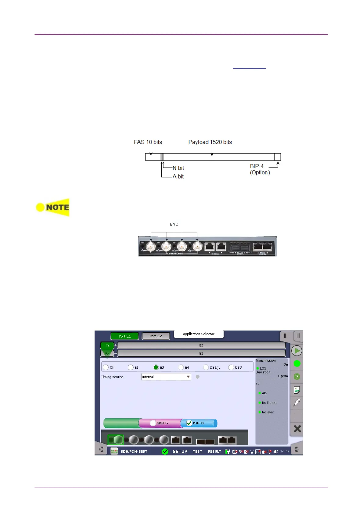 When the transmitter is set up with only an E3 interface, selecting the TxTx button