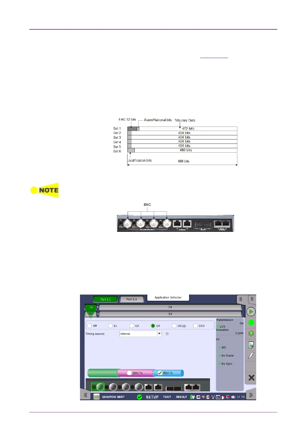 When the transmitter is set up with only an E4 interface, selecting the TxTx button