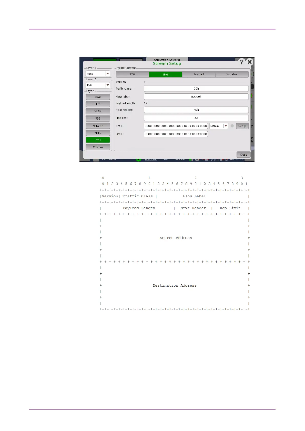Touching the IPv6IPv6 layer button displays the parameters available for the