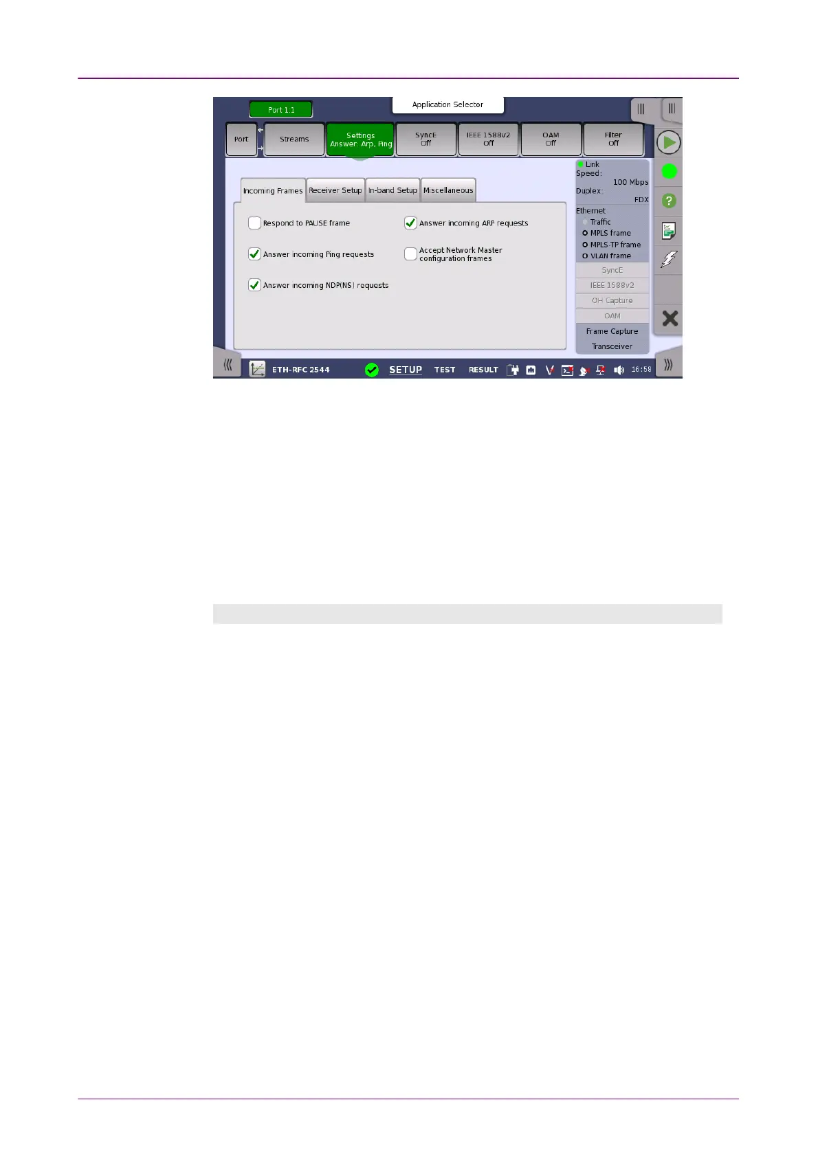 frames on the currently selected Ethernet port. It can also be used to inspect