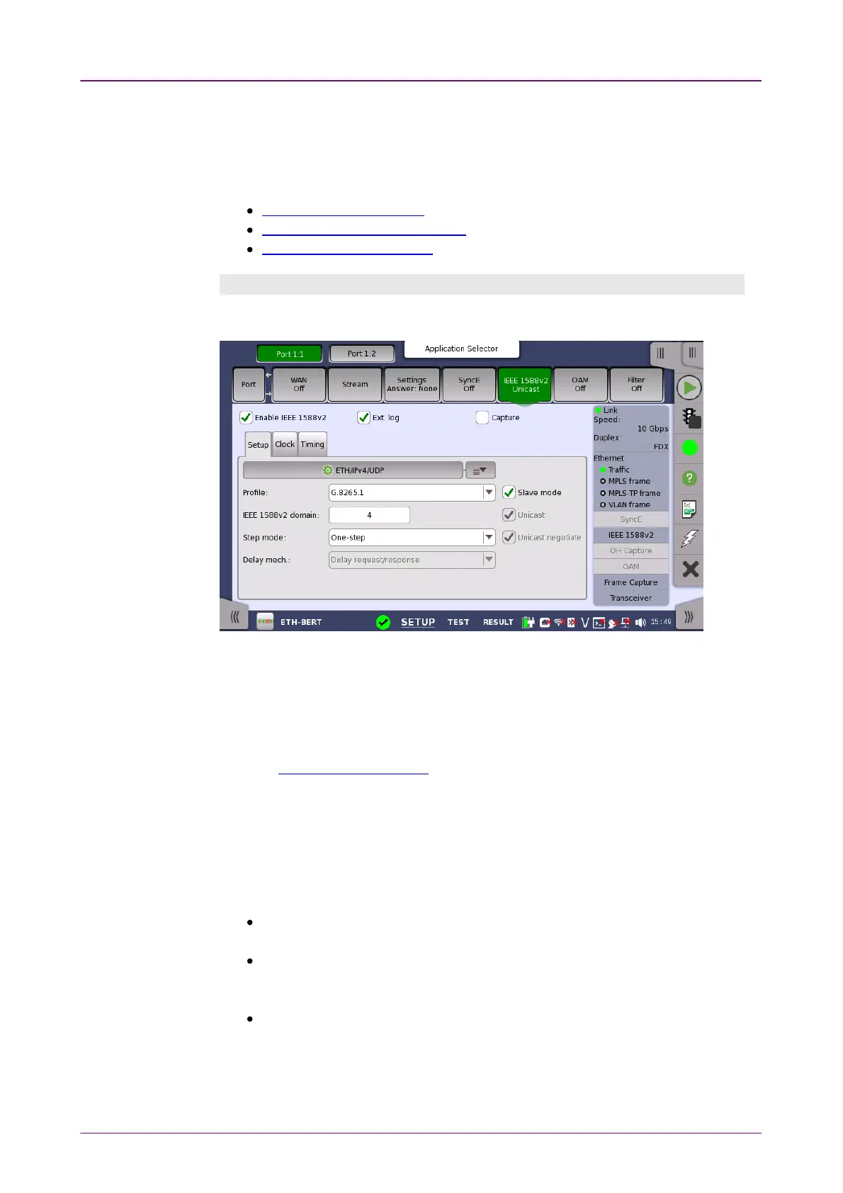 The SetupSetup tab page contains the general setup parameters for IEEE 1588v2.