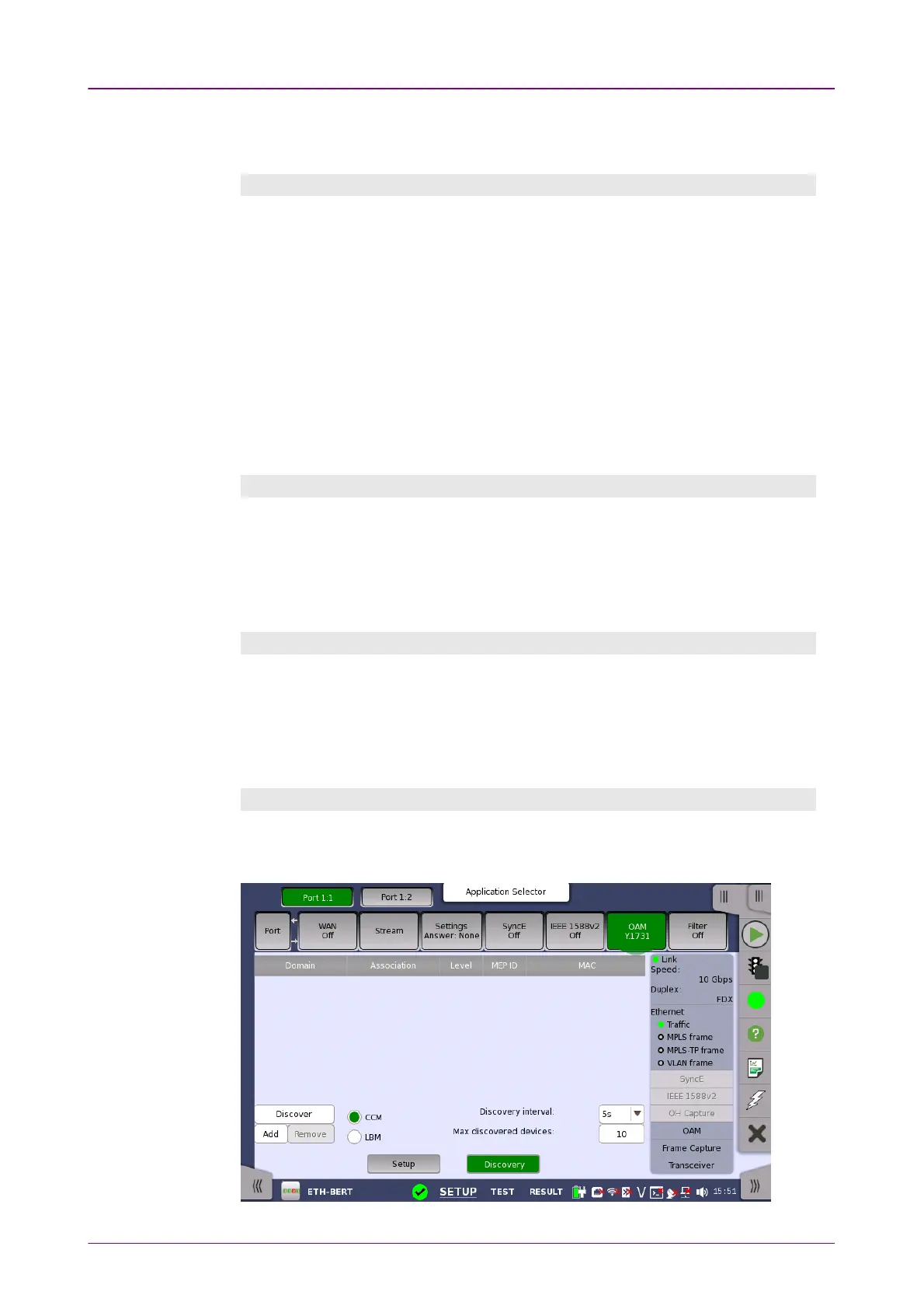 Touching the DiscoveryDiscovery button available for the 802.1ag or Y.1731 protocol