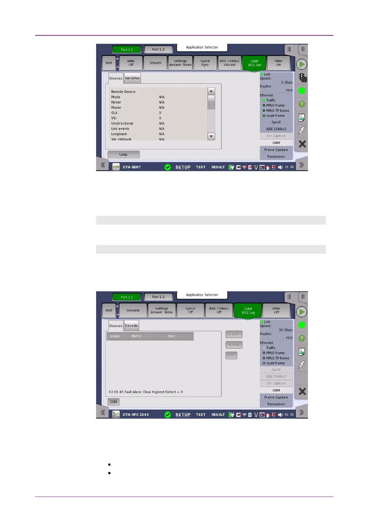 Touch the LoopLoop button to send the far-end device into loopback mode and