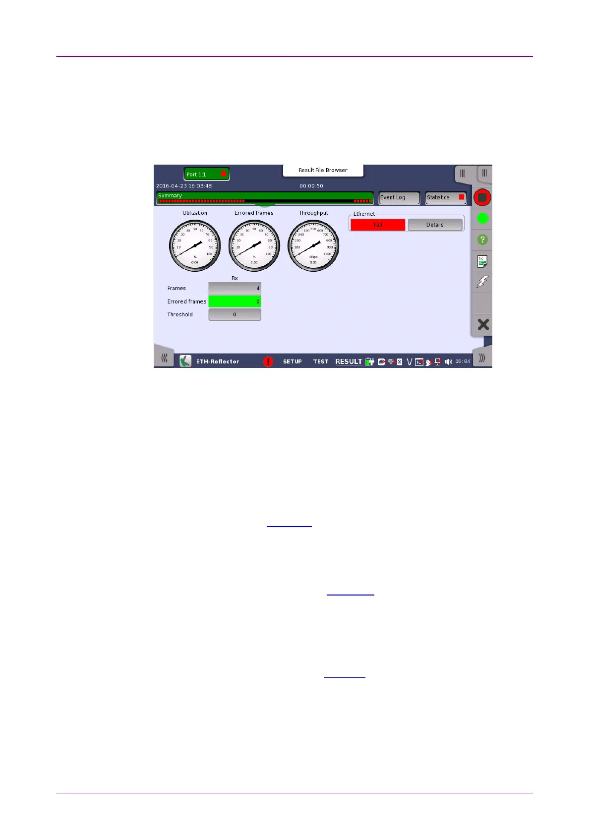 When you go to the test results of the Ethernet Reflector application, the