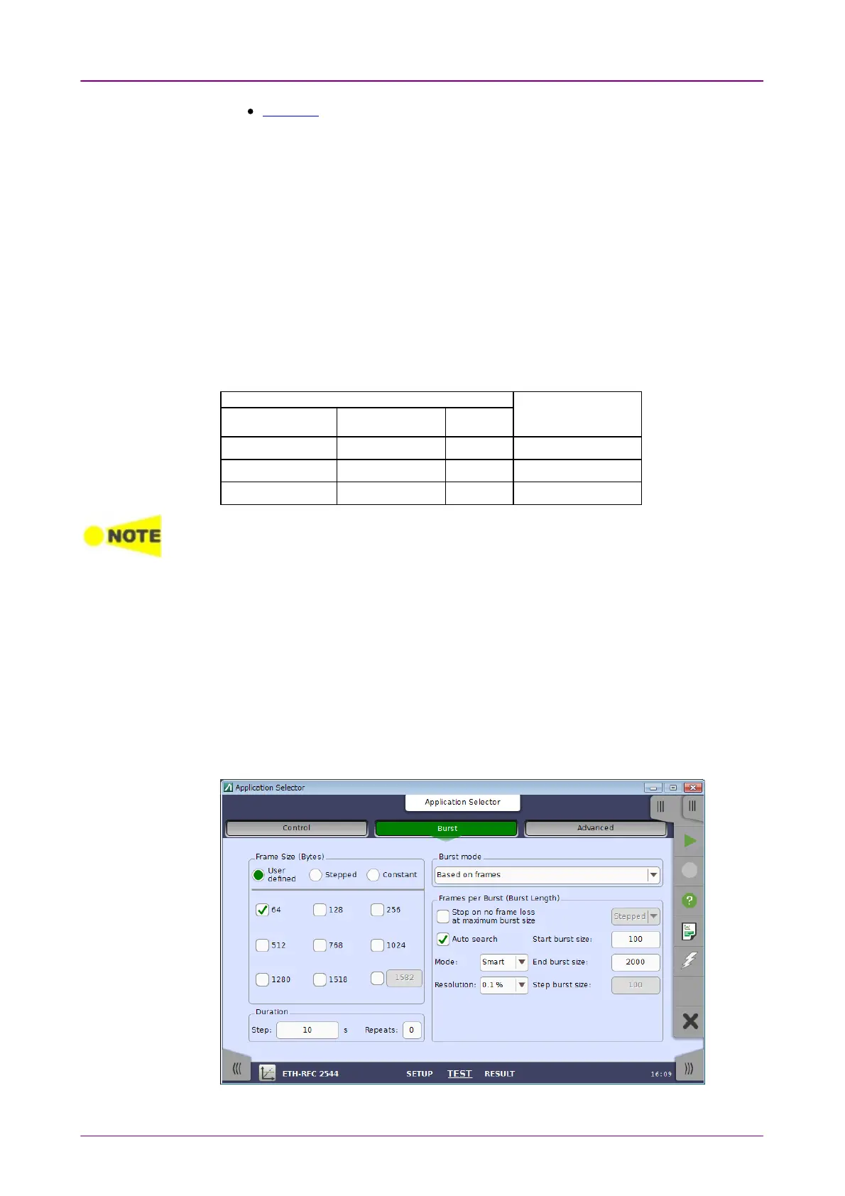 Only available if you have specified a Burst test on the 'Control' of the Test