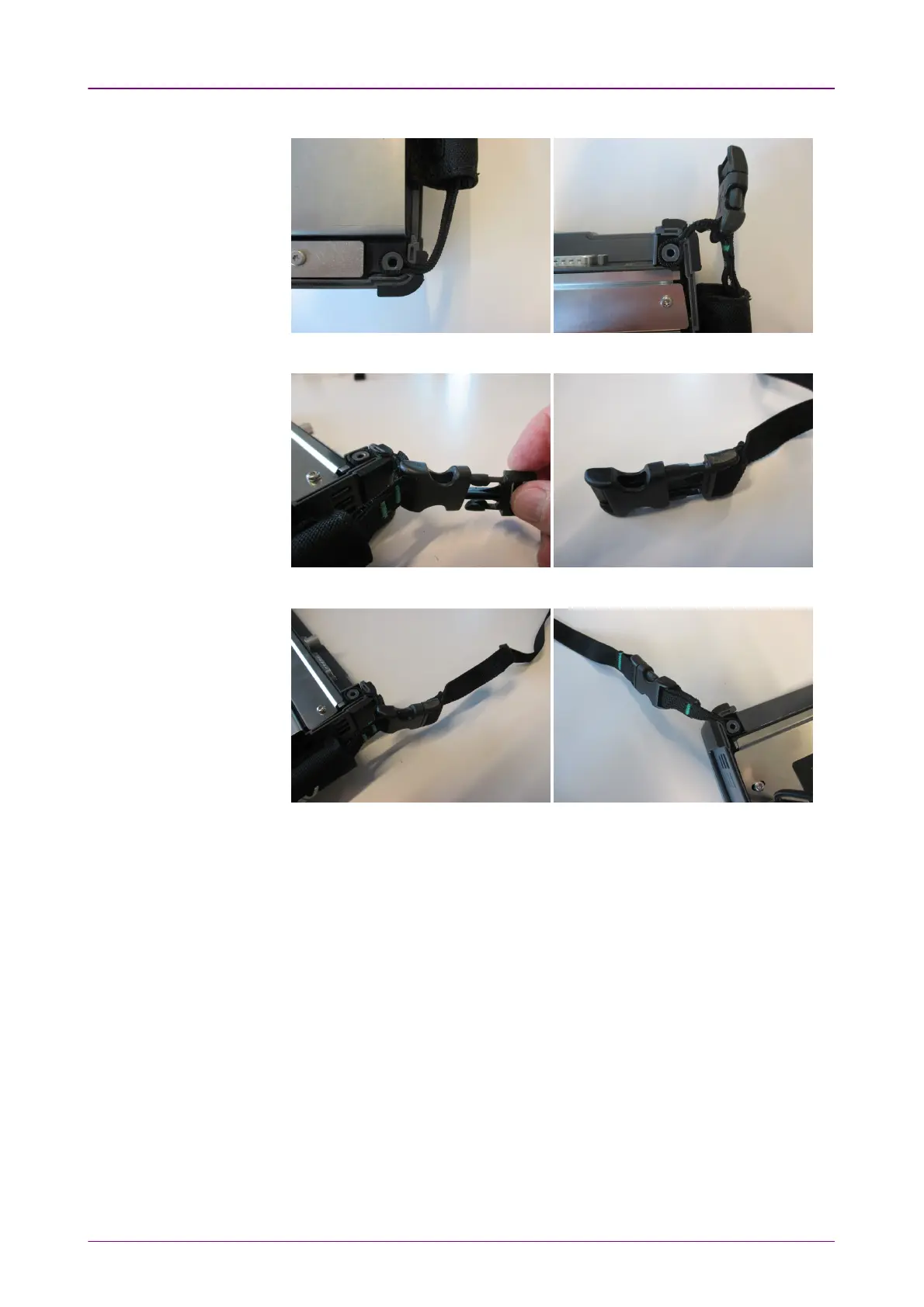 7. Remove the buckle cap from the handle and the carrying strap.