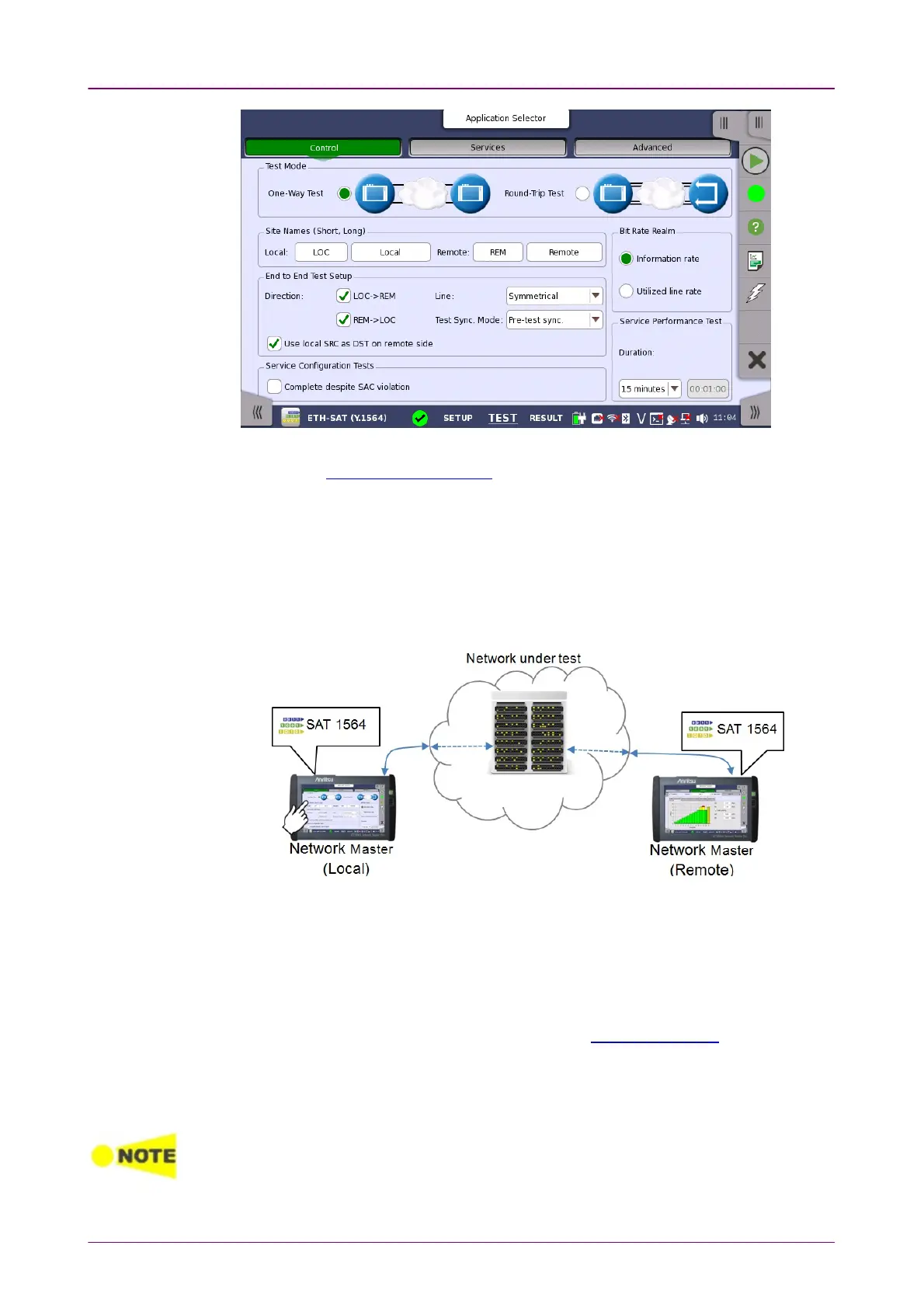 The required setup to perform SAT Y.1564 test is transferred from the 'local'