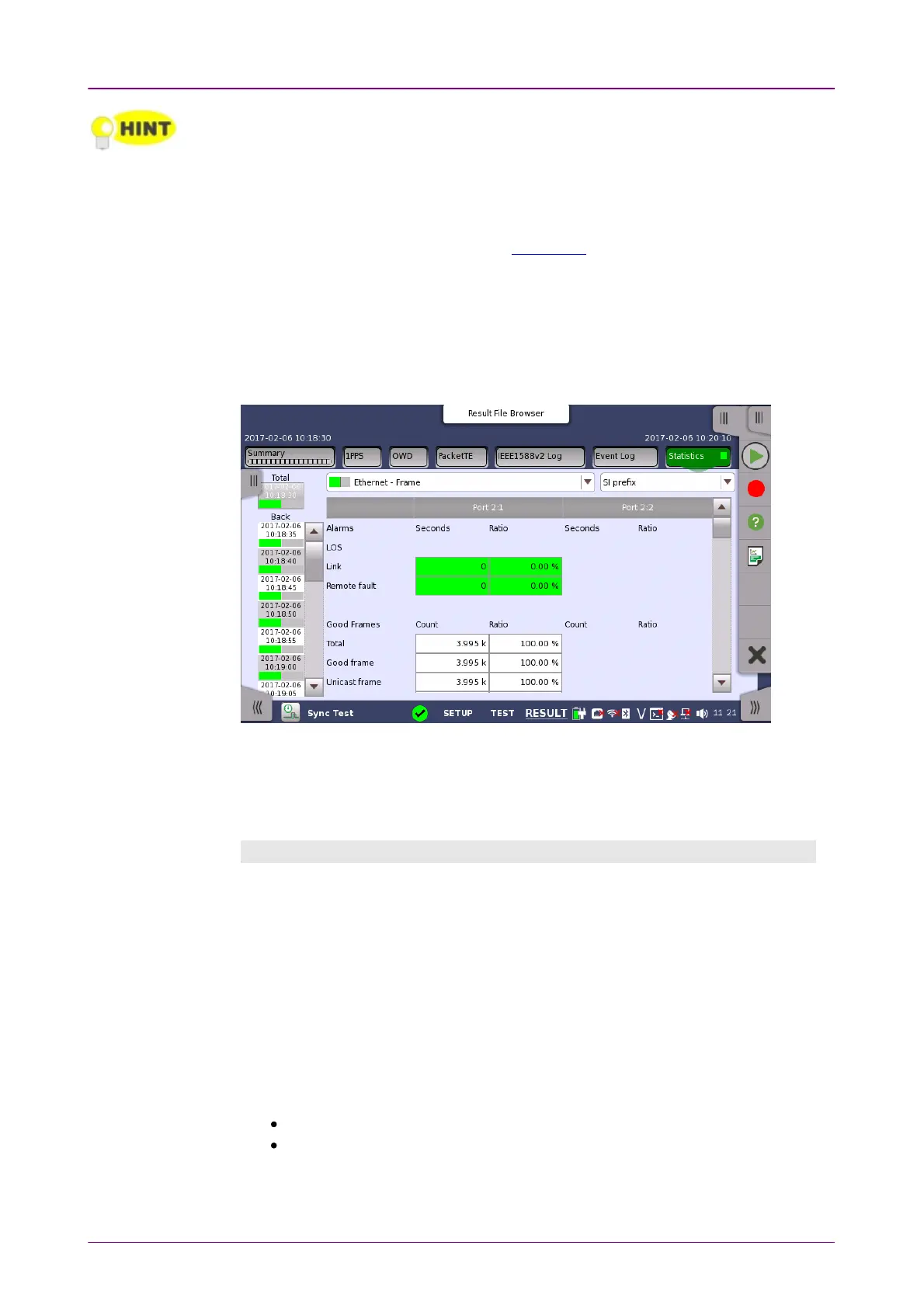 interval during the test. You can also zoom in on a specific result item. The