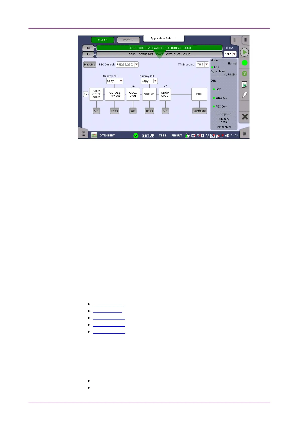 Touch the MappingMapping button and use the launched dialog box to define the OTUk