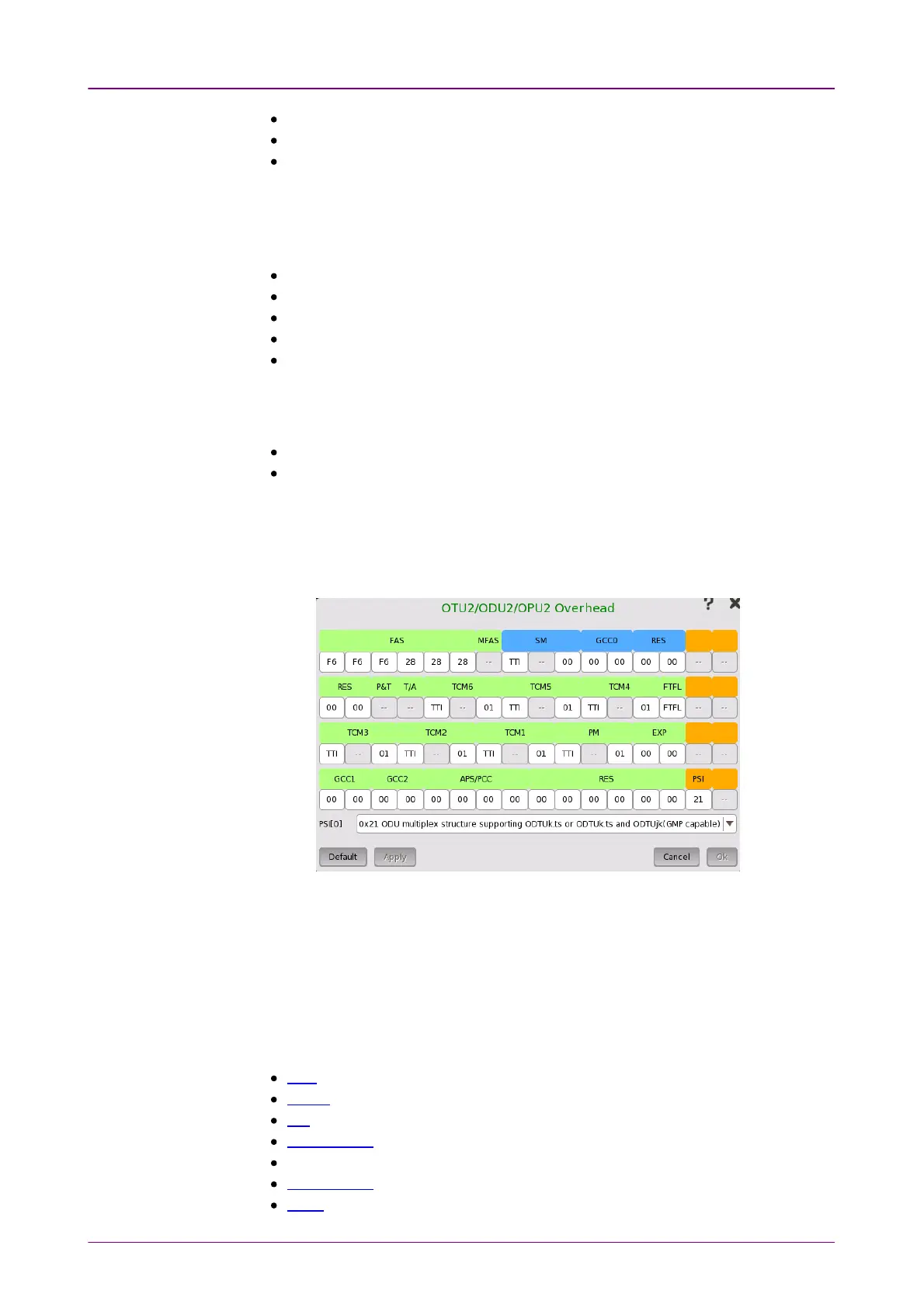 you to configure it. Blue fields are OTU overhead. Green fields except FAS and