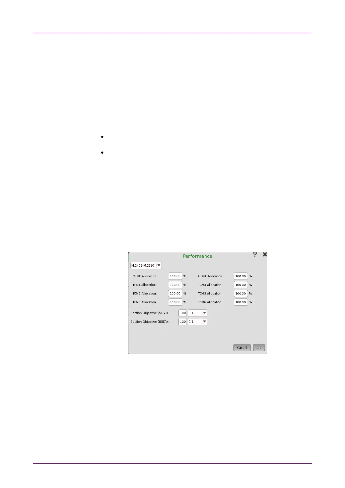 Select the performance type as either G.8201G.8201 or M.2401/M.2110M.2401/M.2110. The contents