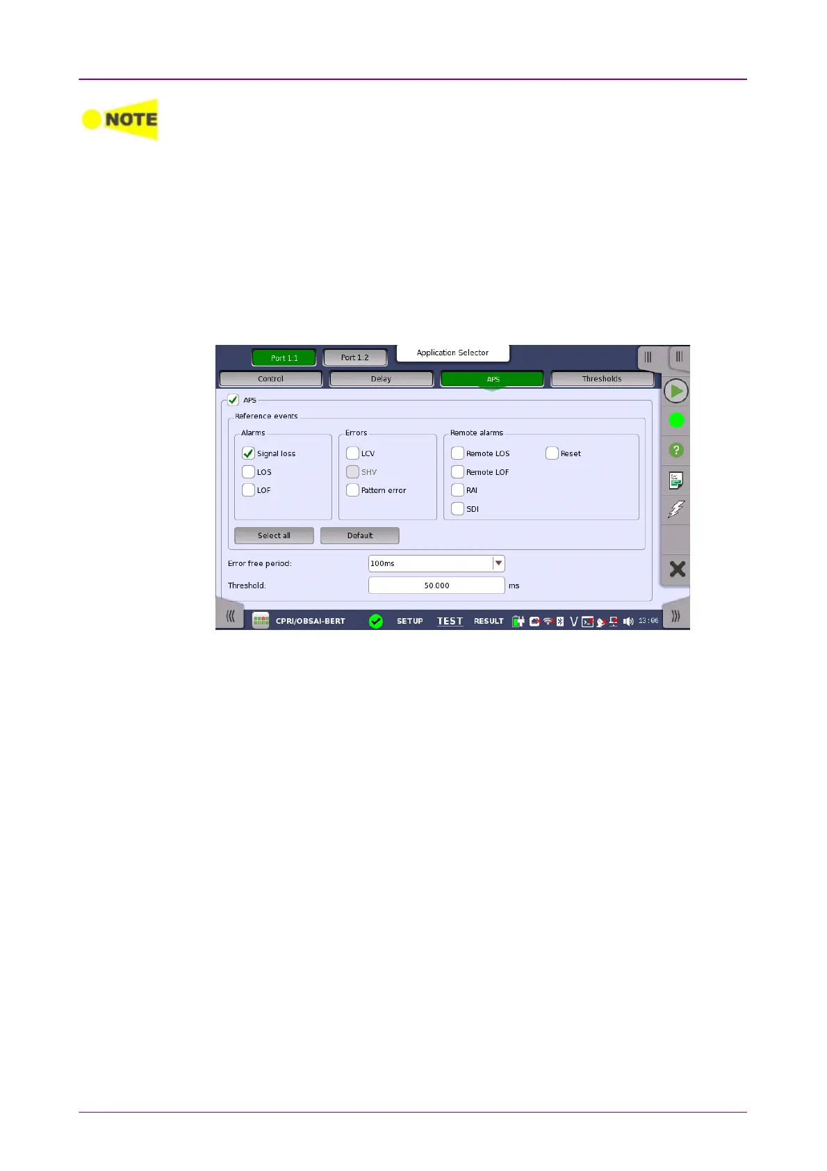 Select the check box for executing APS test during BER measurement.