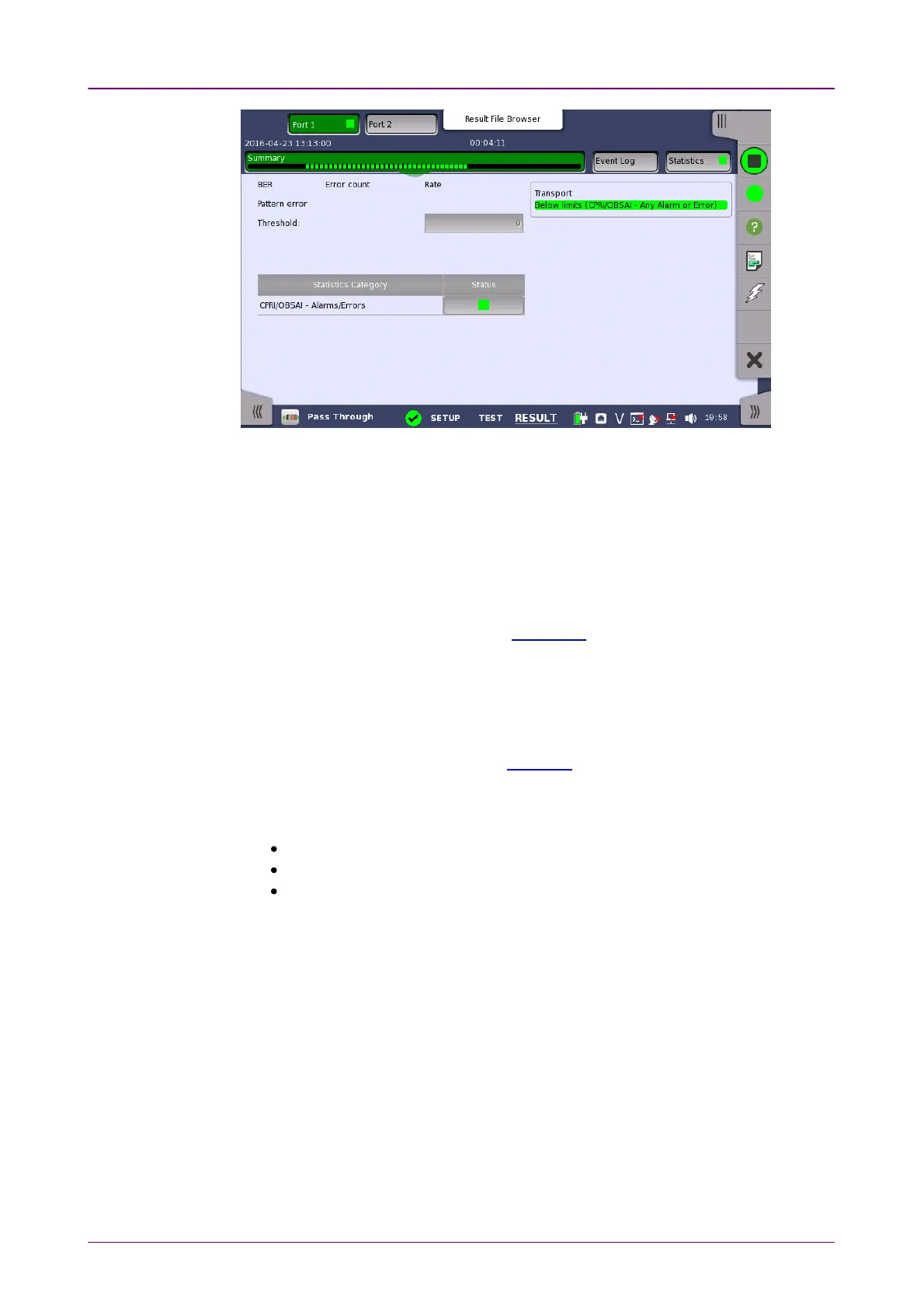 This screen contains a summary of the results of the CPRI/OBSAI Pass