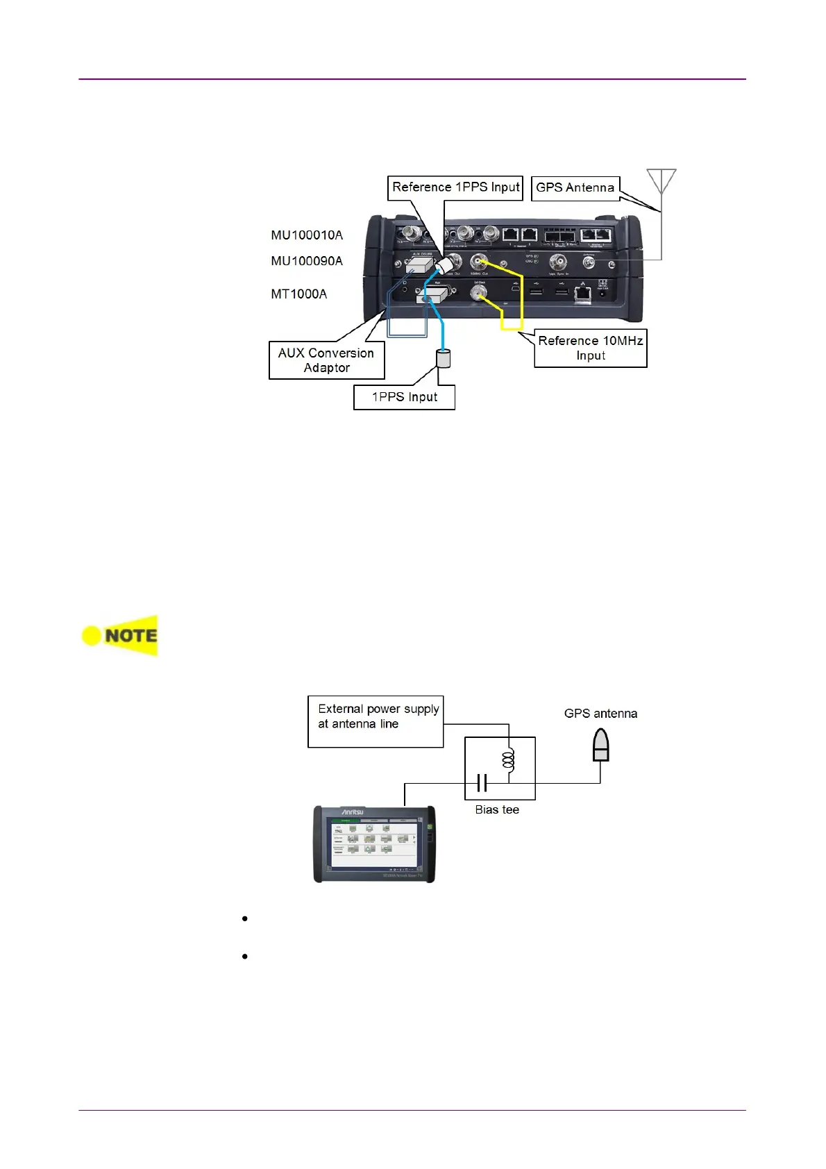Use GPS antenna, BNC cables and J1705A AUX Conversion Adaptor for the