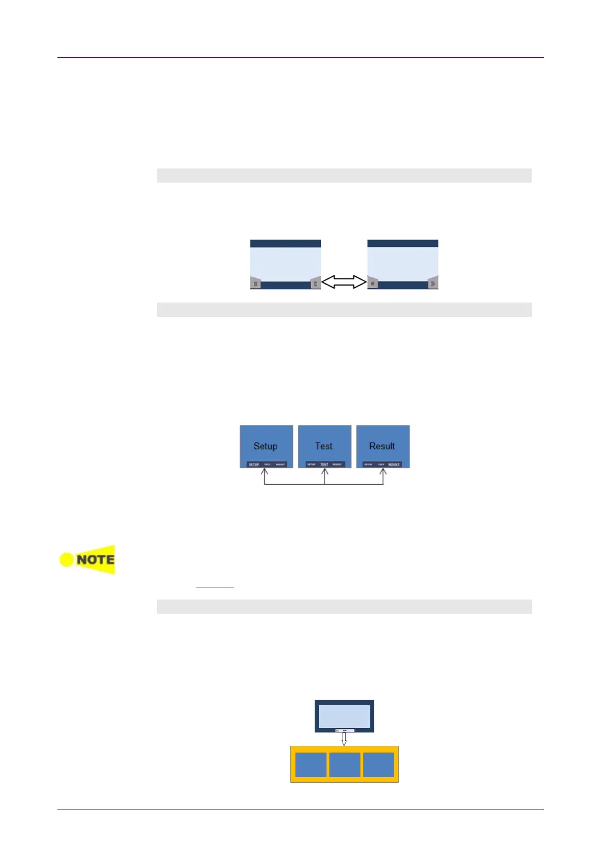switch between ports setup, test setup and test result.