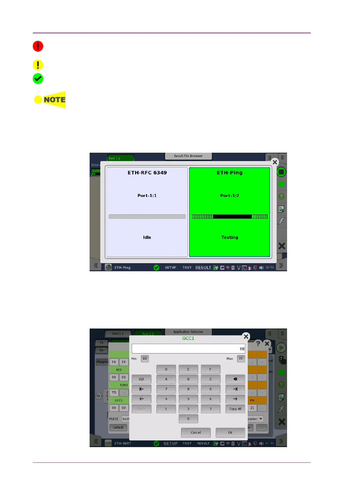 Touching the summarized Test Status icon will open a dialog showing the
