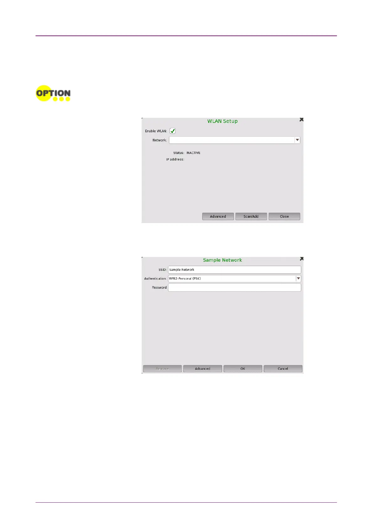 1. Touch the WLANWLAN. WLAN SetupWLAN Setup dialog box appears.