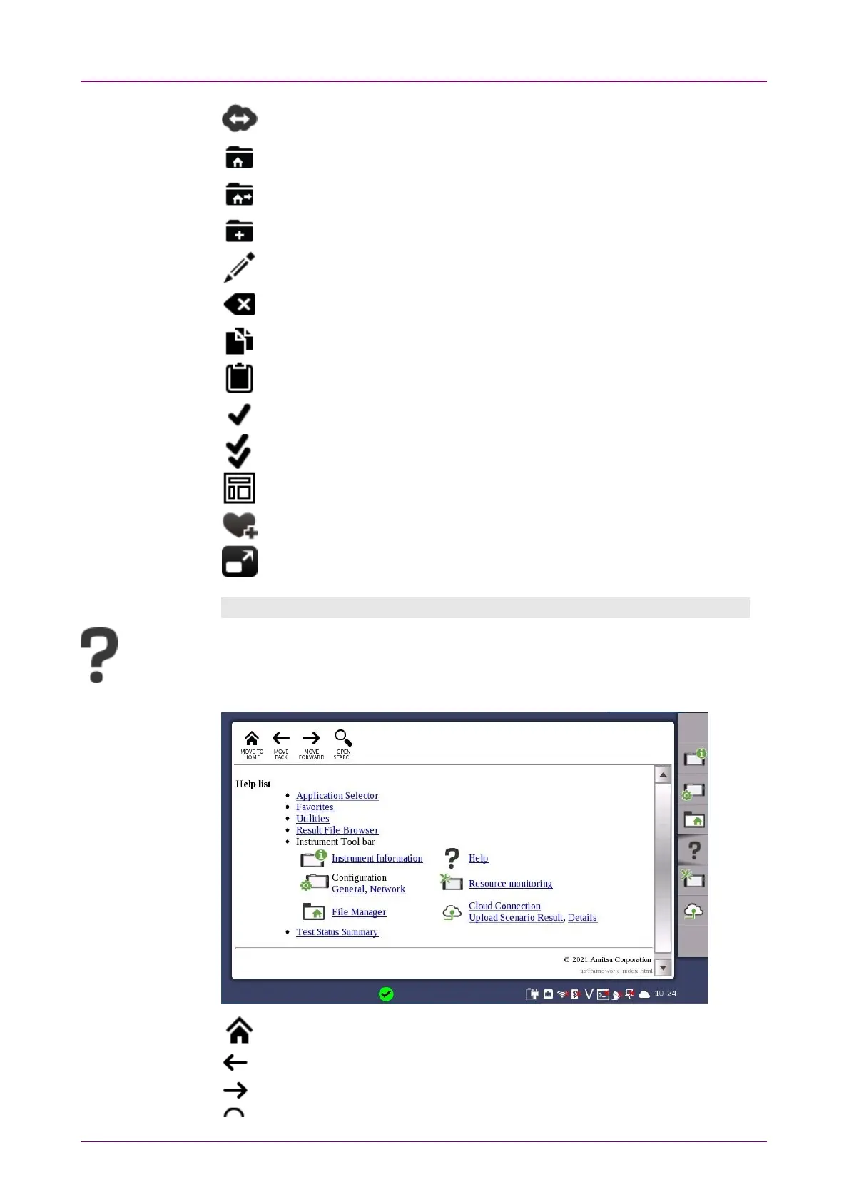 icon launches the help screen with context-related help. You can search for