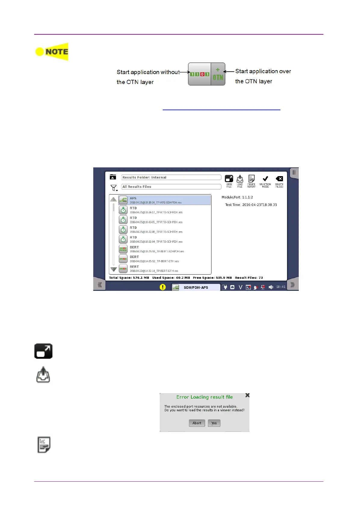 OTN signal layer. Carefully touch the correct part of the icon when starting the