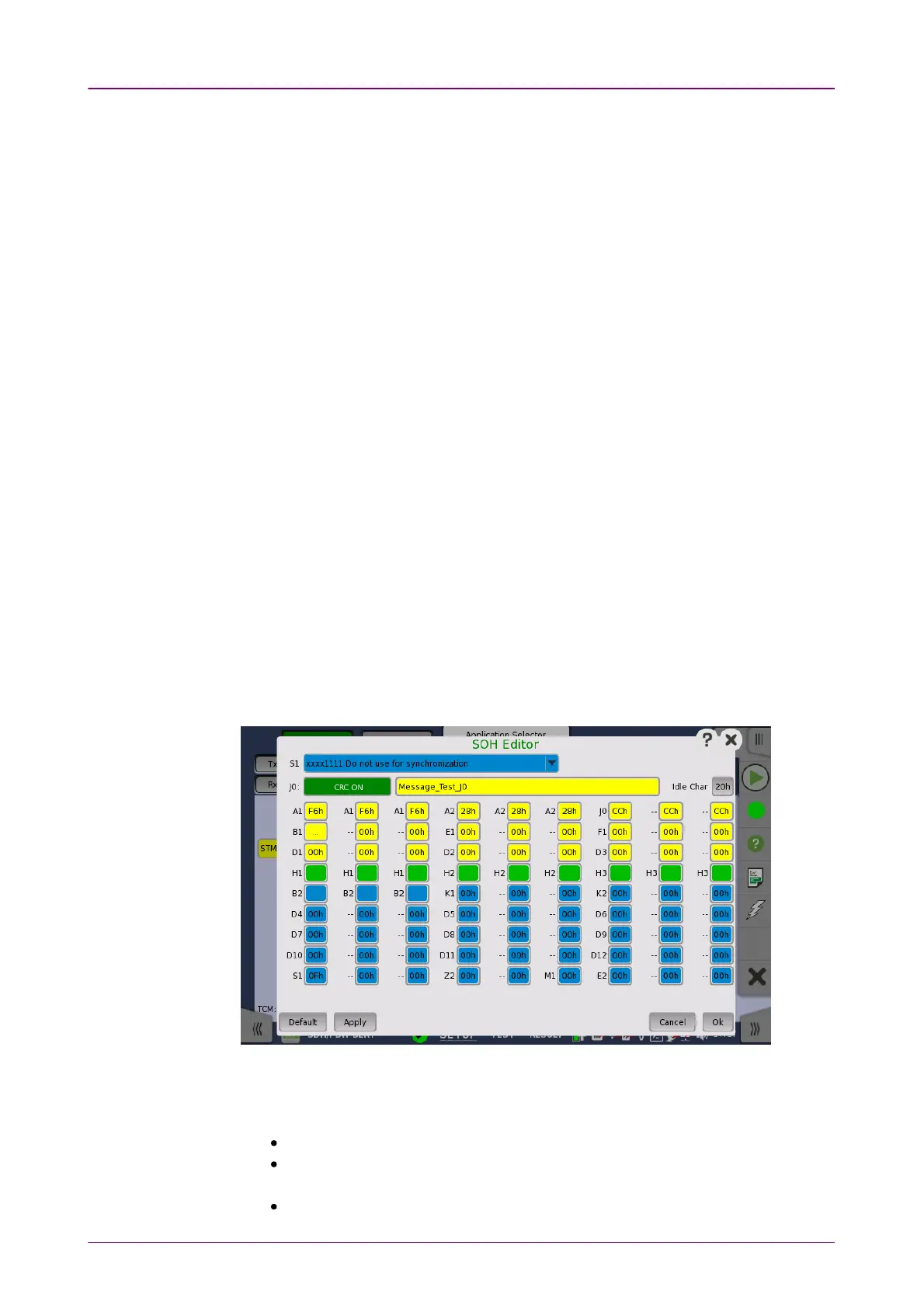 You can configure the section overhead (SOH) in a special dialog box (SOHSOH