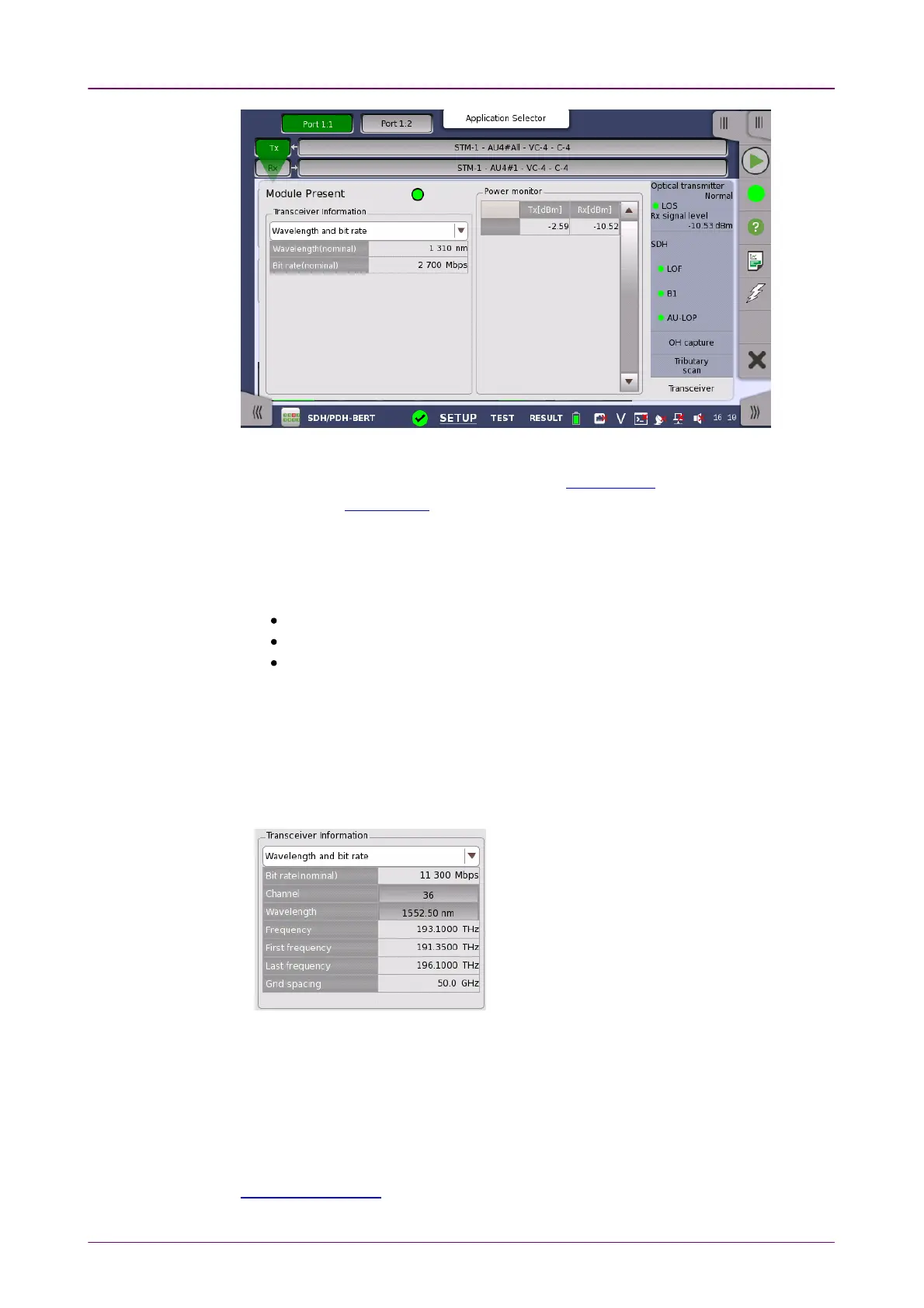 Wavelength and bit rateWavelength and bit rate shows the nominal wavelength and bit rate.
