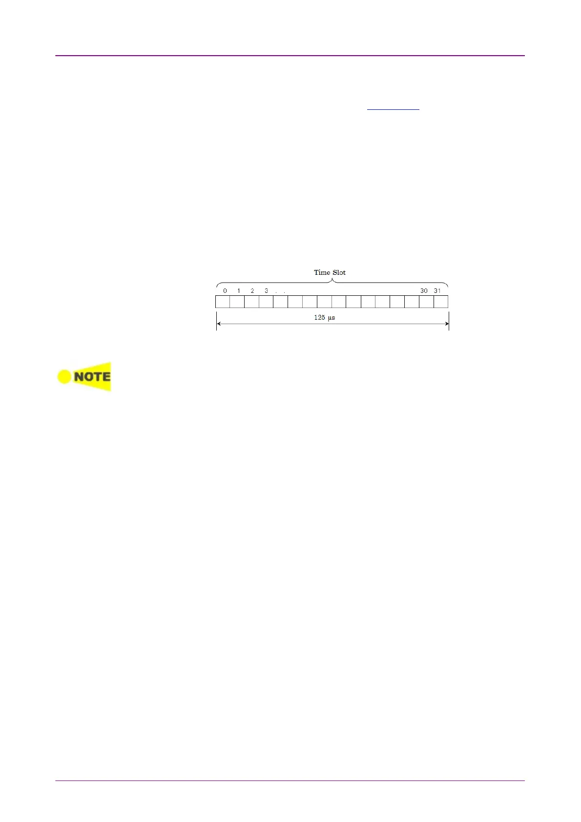 The E1 frame has 32 time slots during 125μs, and one time slot contains eight bits.