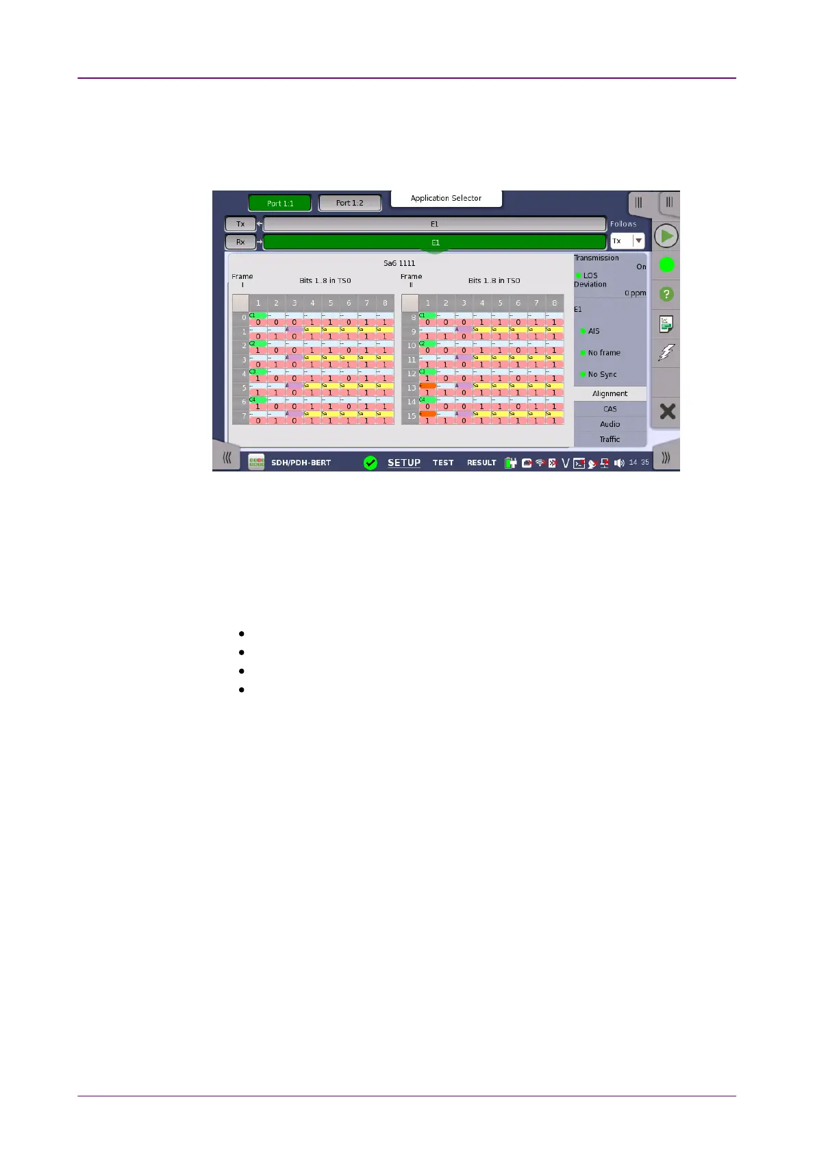This screen provides information on the frame alignment when available. The