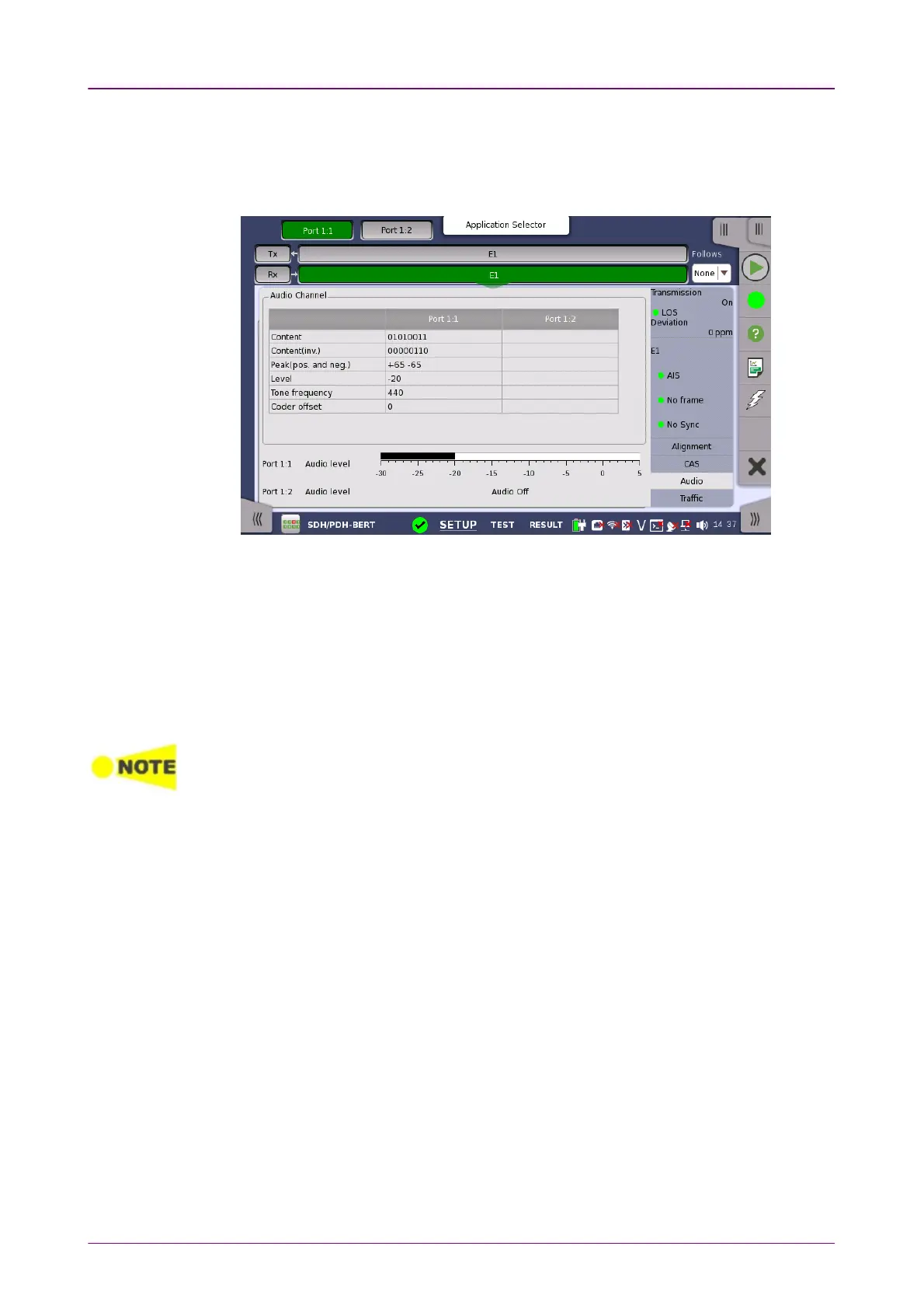Touching the AudioAudio button in the status area of the Ports SetupPorts Setup screen
