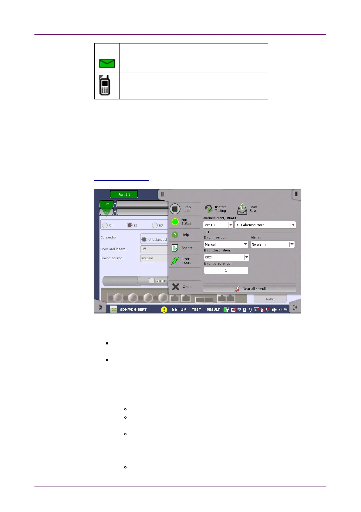 PDH Alarm/ErrorsPDH Alarm/Errors: Inserts errors or alarms related the PDH multi frame or