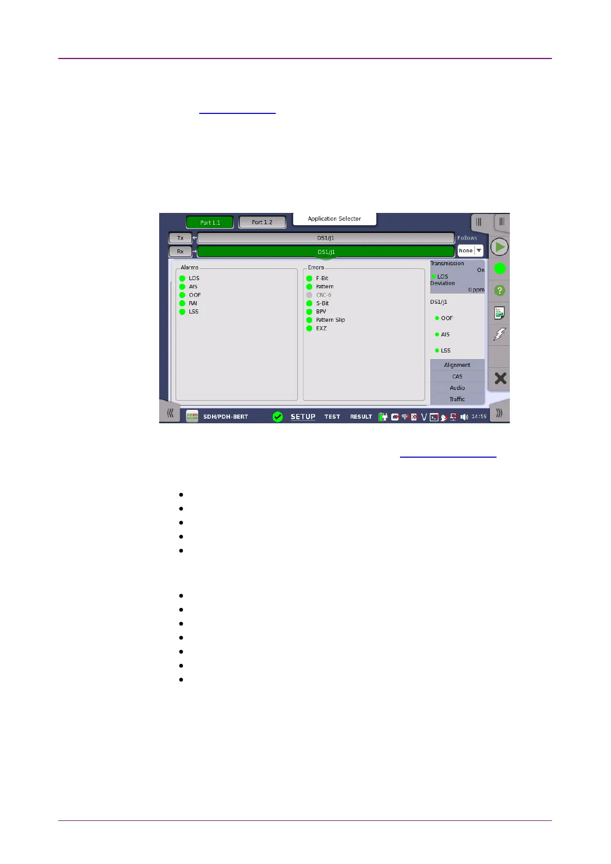DS1/J1 interface. Status is indicated by the use of colored Lamp icons.