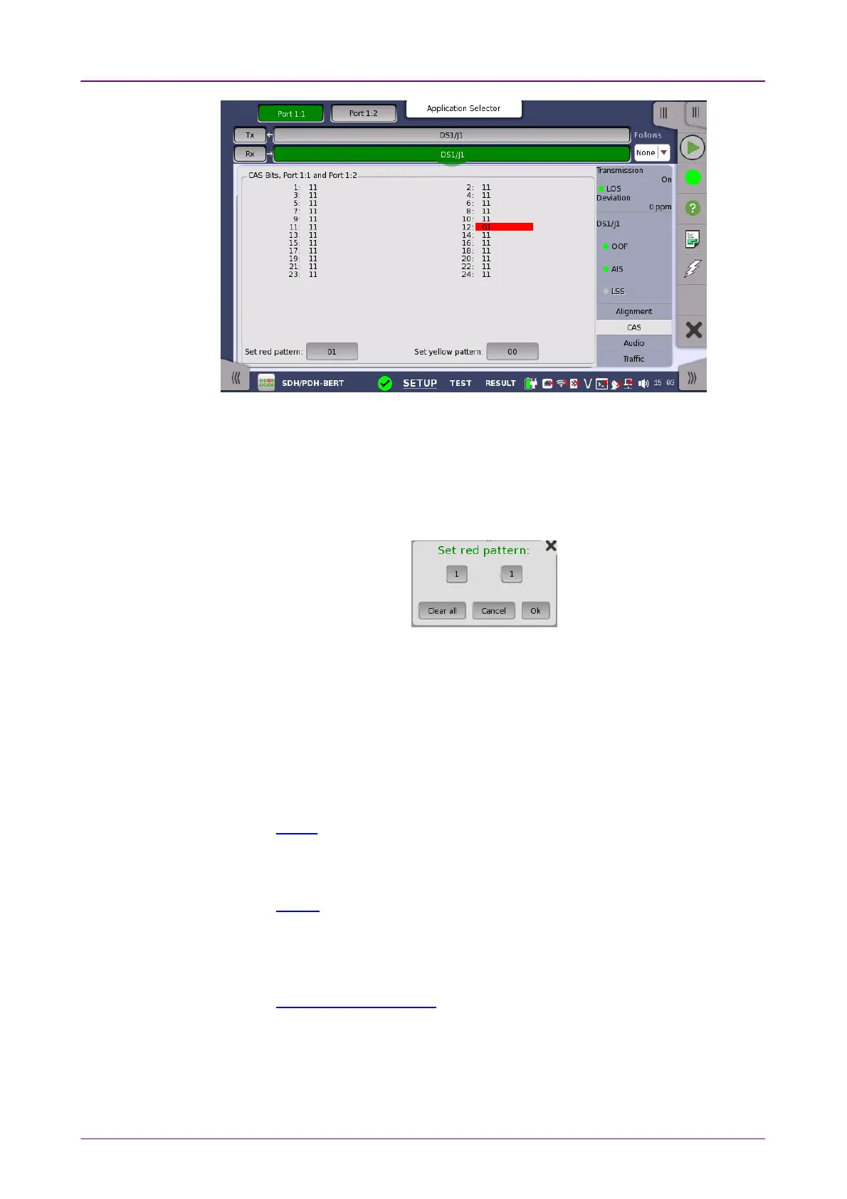 This screen gives information on the CAS (Channel Associated Signaling)